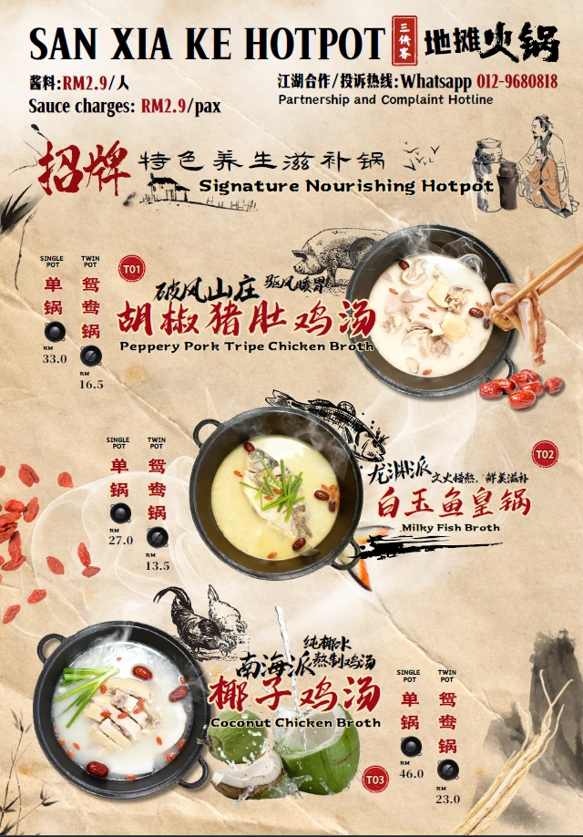 入口微辣回甘,是三侠客最具人气的江湖招牌汤底,越煮越香,越吃越上瘾。