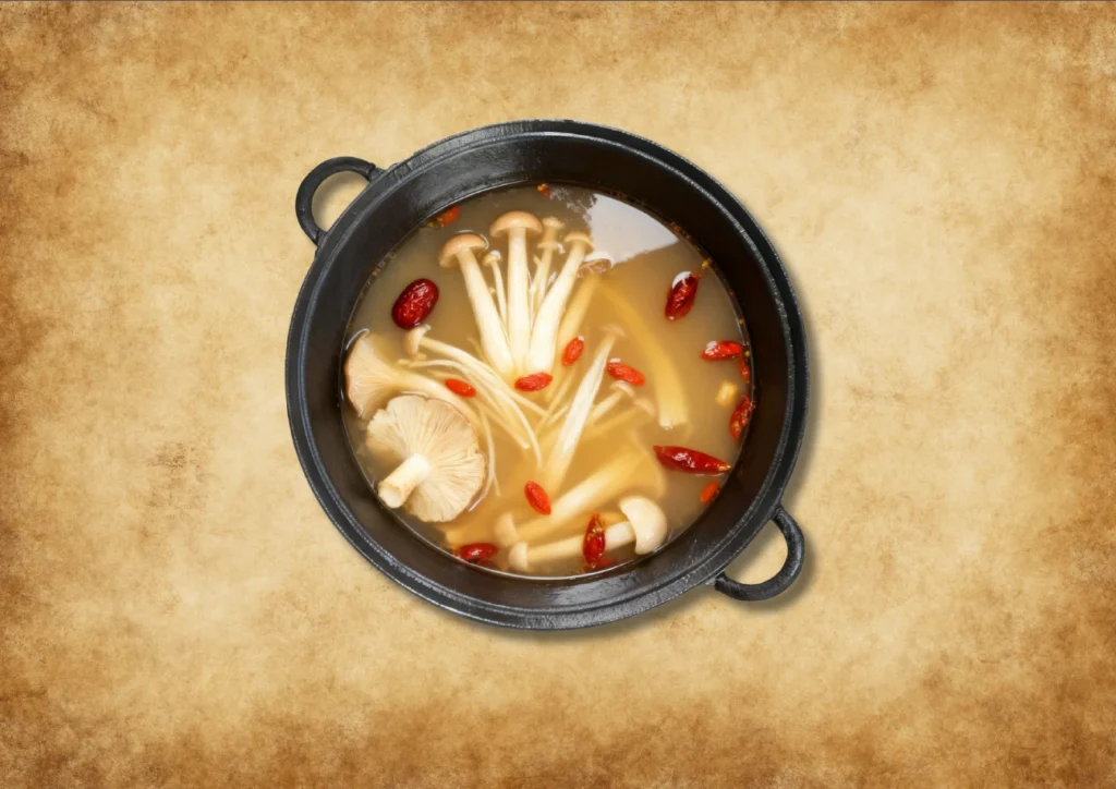 融合多种中式药材熬制,汤头温润醇厚,滋补不上火。越煮越香,适合慢慢享用的养生锅底。